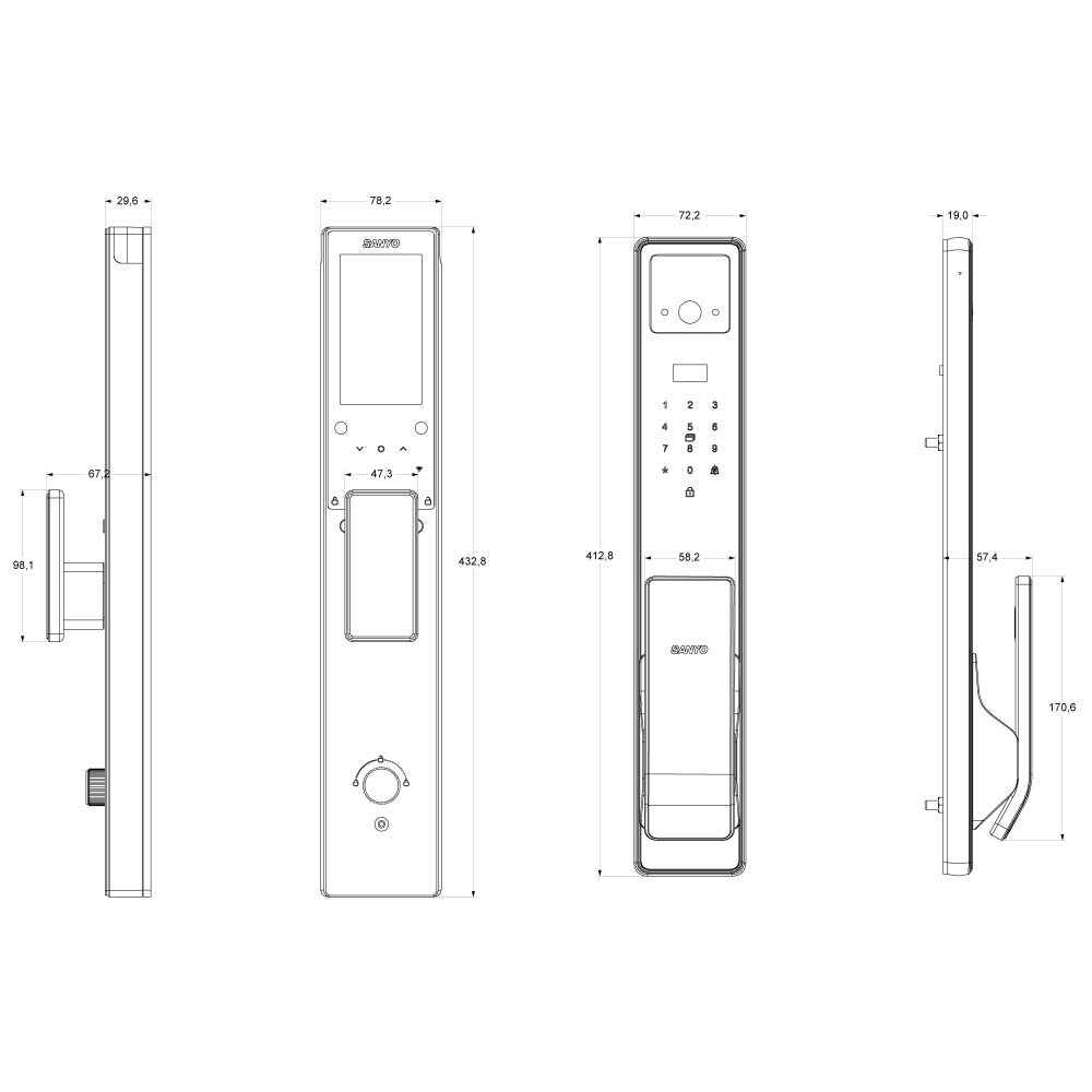 Sanyo D200 Tuya автоматический умный замок с домофоном и камерой высокого разрешения с ночным видением. Отпирание и запирание двери происходит нажатием кнопки. Имеет 5 способов разблокировки: отпечаток пальца, цифровой пароль, RFID карта, механический ключ, приложение через смартфон. Подходит для входных дверей толщиной 60-120 мм. Обладает современным лаконичным дизайном, четкими линиями и гармонично вписывается в дизайн двери. Прост в установке. Корпус ручки сделан из фрезерованного цельного алюминия. Есть приложение для IOS и Android - Smart Life (Tuya). Взаимодействие с умным домом: Яндекс Алиса, Google Home и Alexa.