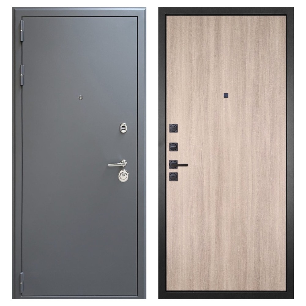 Прочность и долговечность: Дверное полотно выполнено из качественной стали, что гарантирует надёжность и устойчивость к взлому.