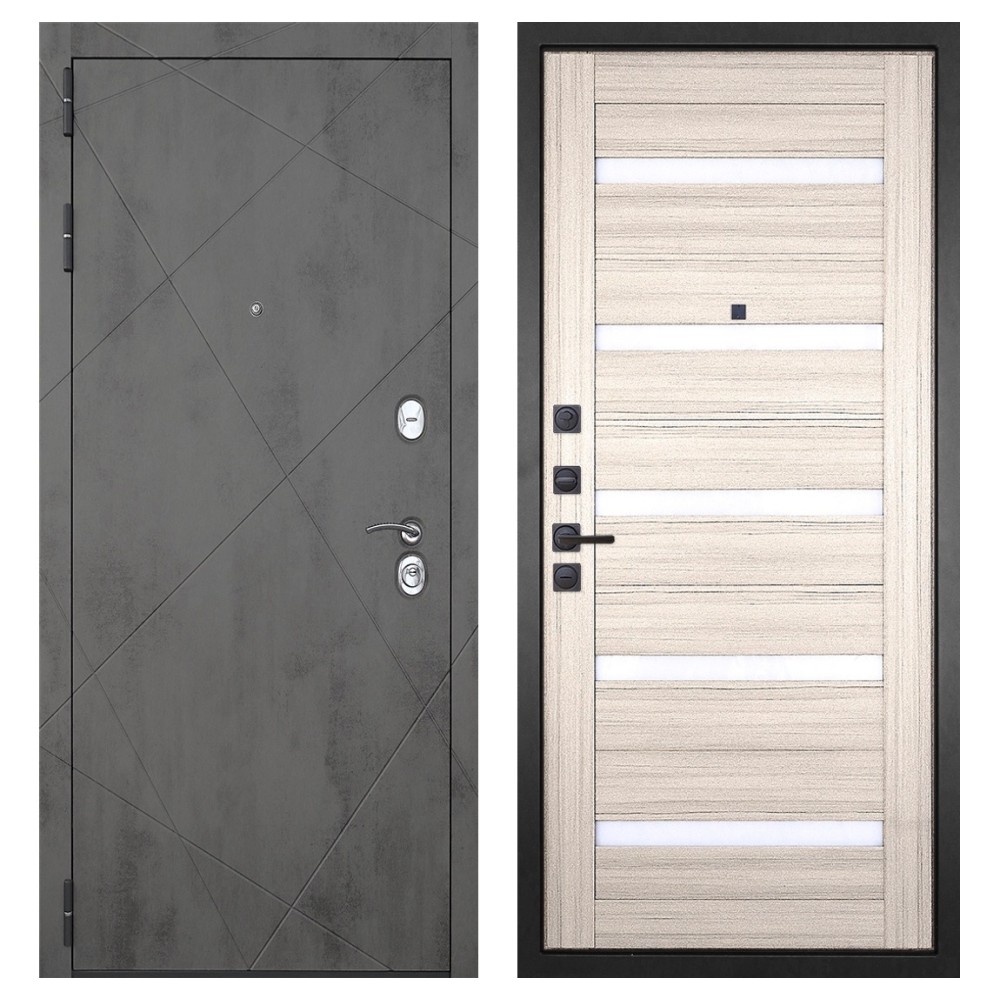 Дизайн: Современная внешняя отделка в цвете «тёмный бетон» и возможность выбора внутренней панели под интерьер квартиры.