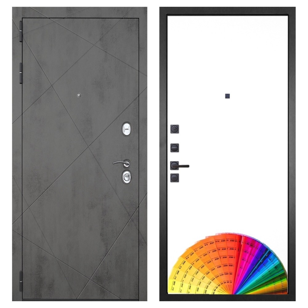 Дизайн: Современная внешняя отделка в цвете «тёмный бетон» и возможность выбора внутренней панели под интерьер квартиры.