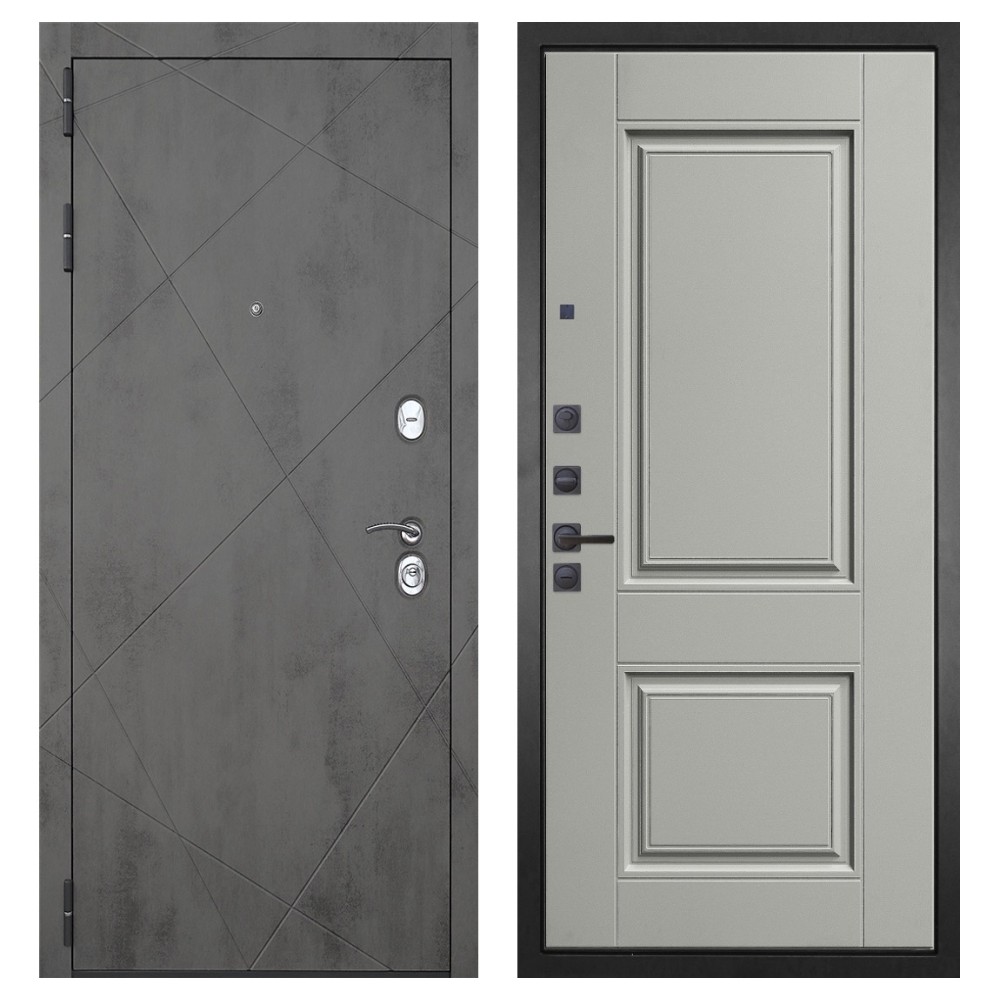 Дизайн: Современная внешняя отделка в цвете «тёмный бетон» и возможность выбора внутренней панели под интерьер квартиры.