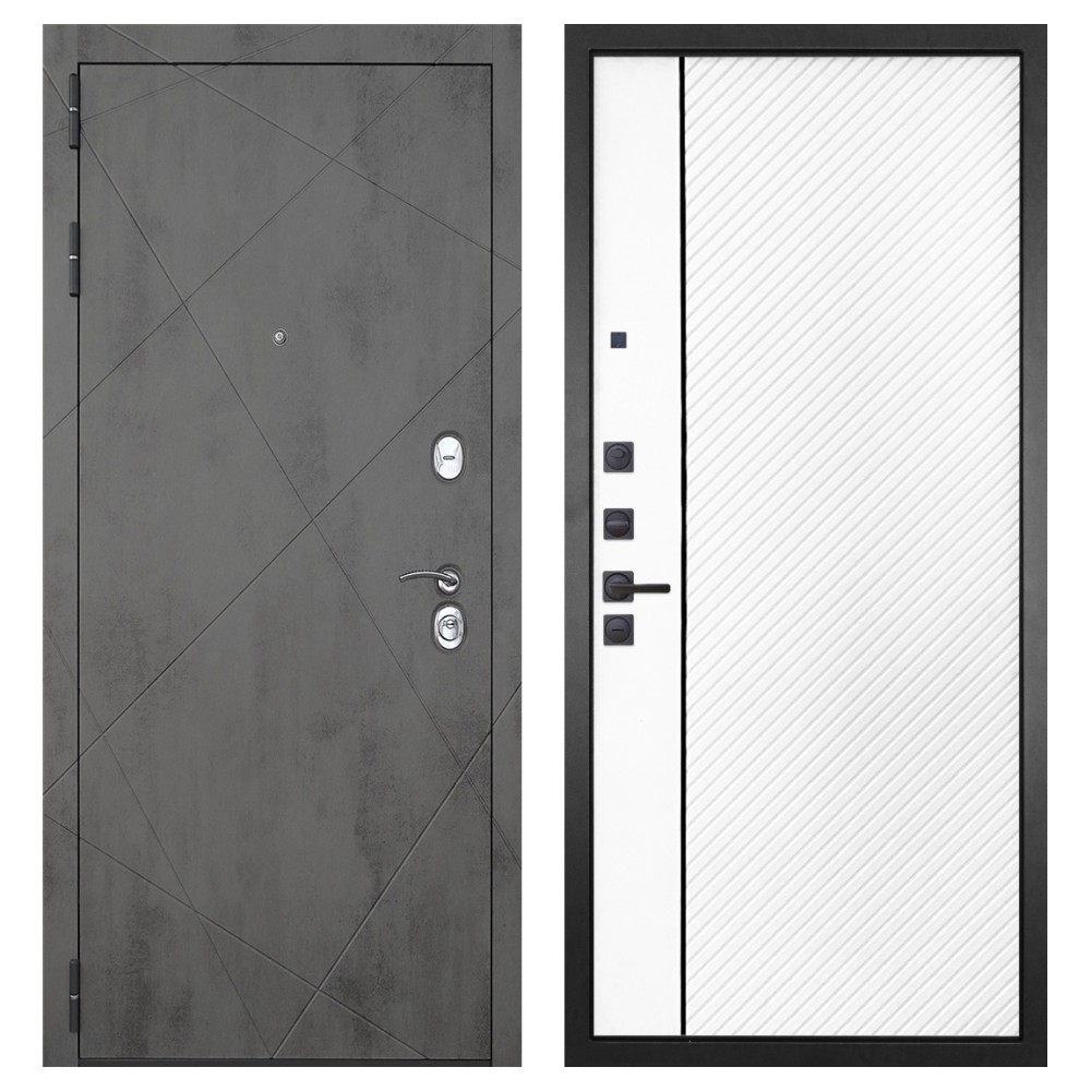 Дизайн: Современная внешняя отделка в цвете «тёмный бетон» и возможность выбора внутренней панели под интерьер квартиры.