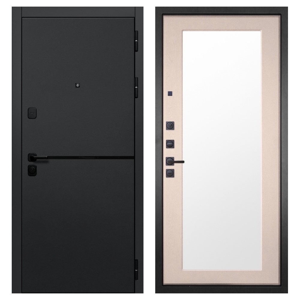 Функциональность и комфорт: Усиленная ручка, удлинённый глазок и чёрная фурнитура обеспечивают удобство использования и гармонируют с общим стилем двери. Конструкция продумана для длительной эксплуатации без потери внешнего вида и функциональности.