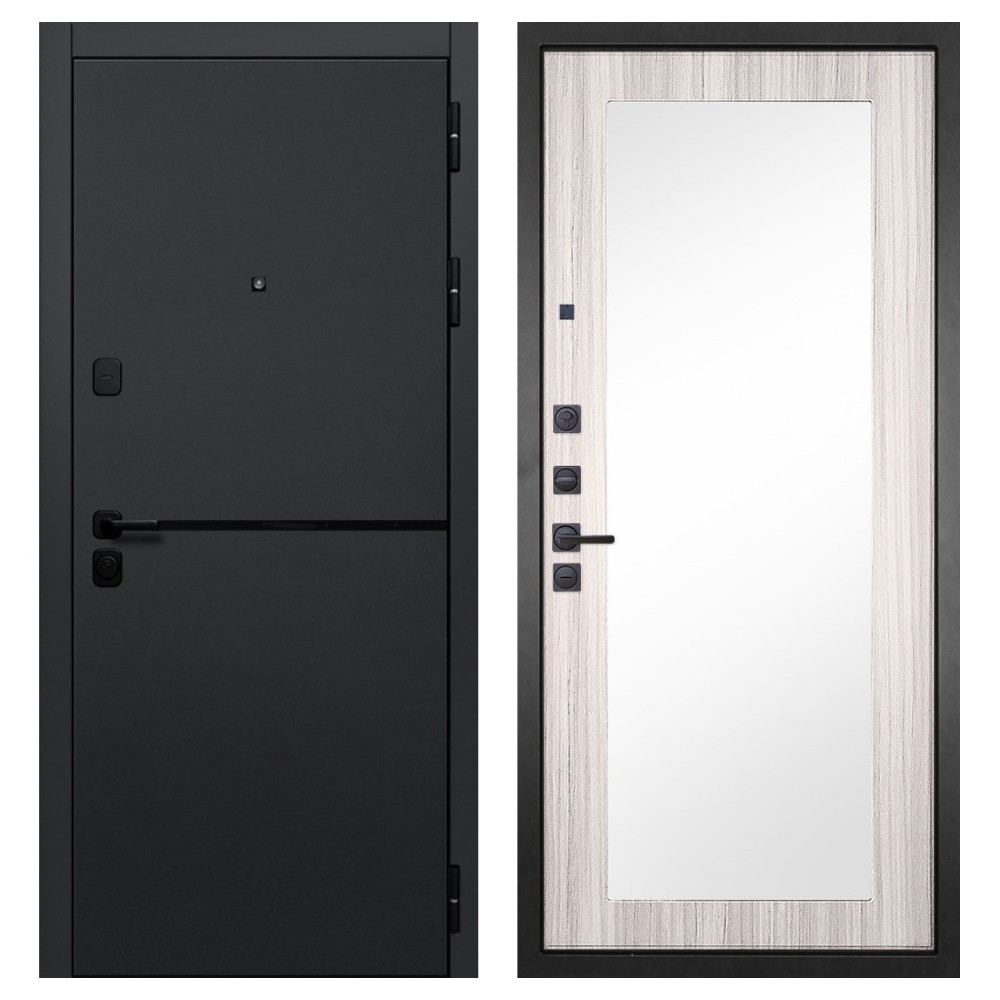Функциональность и комфорт: Усиленная ручка, удлинённый глазок и чёрная фурнитура обеспечивают удобство использования и гармонируют с общим стилем двери. Конструкция продумана для длительной эксплуатации без потери внешнего вида и функциональности.