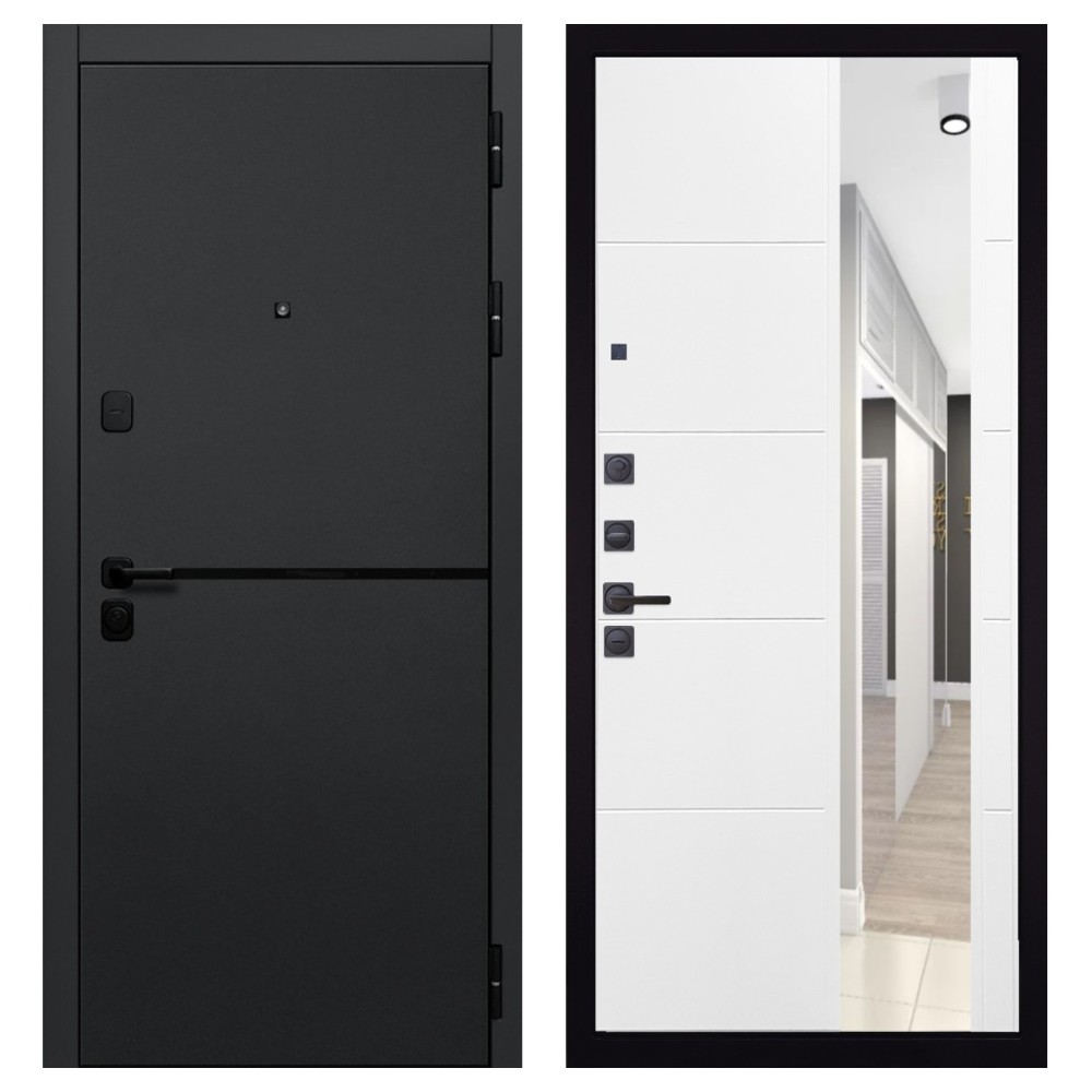 Функциональность и комфорт: Усиленная ручка, удлинённый глазок и чёрная фурнитура обеспечивают удобство использования и гармонируют с общим стилем двери. Конструкция продумана для длительной эксплуатации без потери внешнего вида и функциональности.