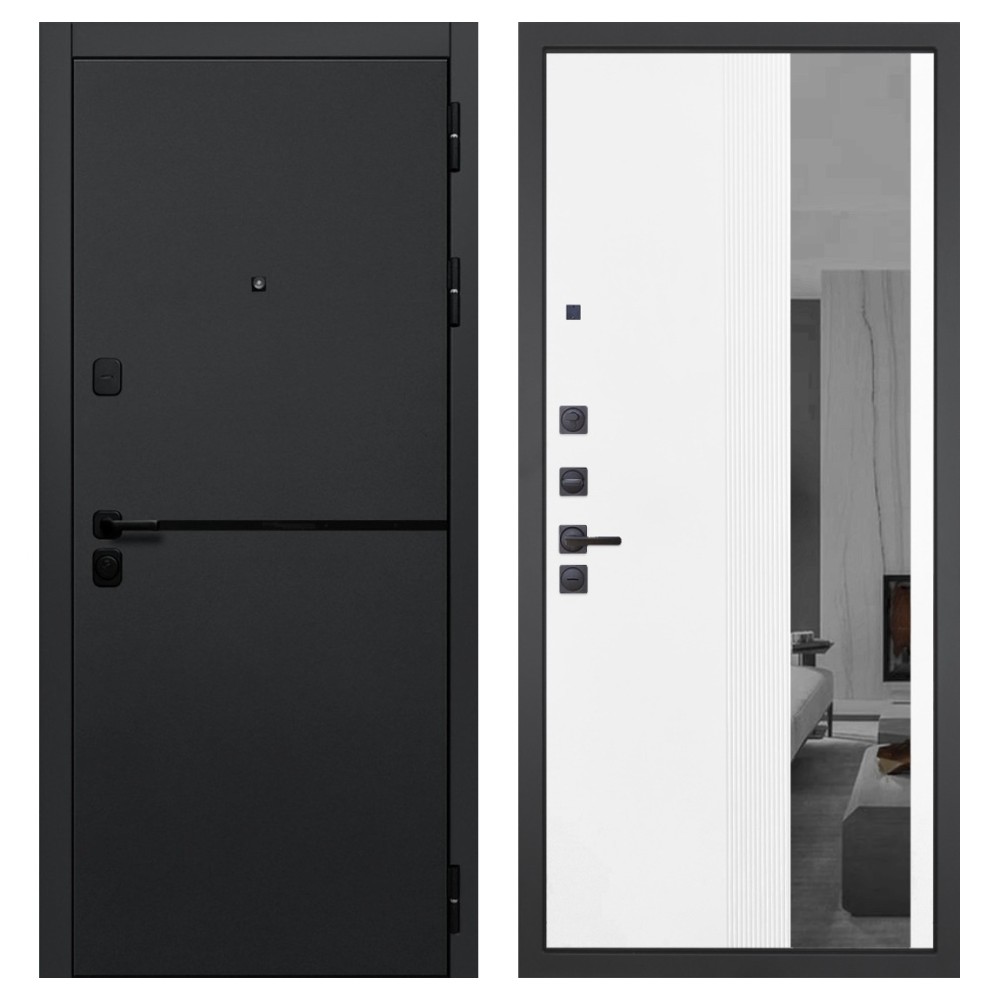 Функциональность и комфорт: Усиленная ручка, удлинённый глазок и чёрная фурнитура обеспечивают удобство использования и гармонируют с общим стилем двери. Конструкция продумана для длительной эксплуатации без потери внешнего вида и функциональности.