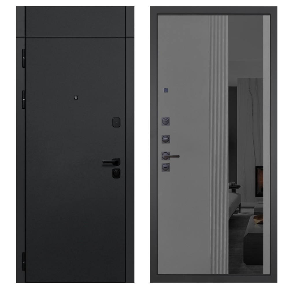 Гранит Горизонт с фрамугой, панель 086 Серый рельеф софт с тонированным зеркало 10 мм