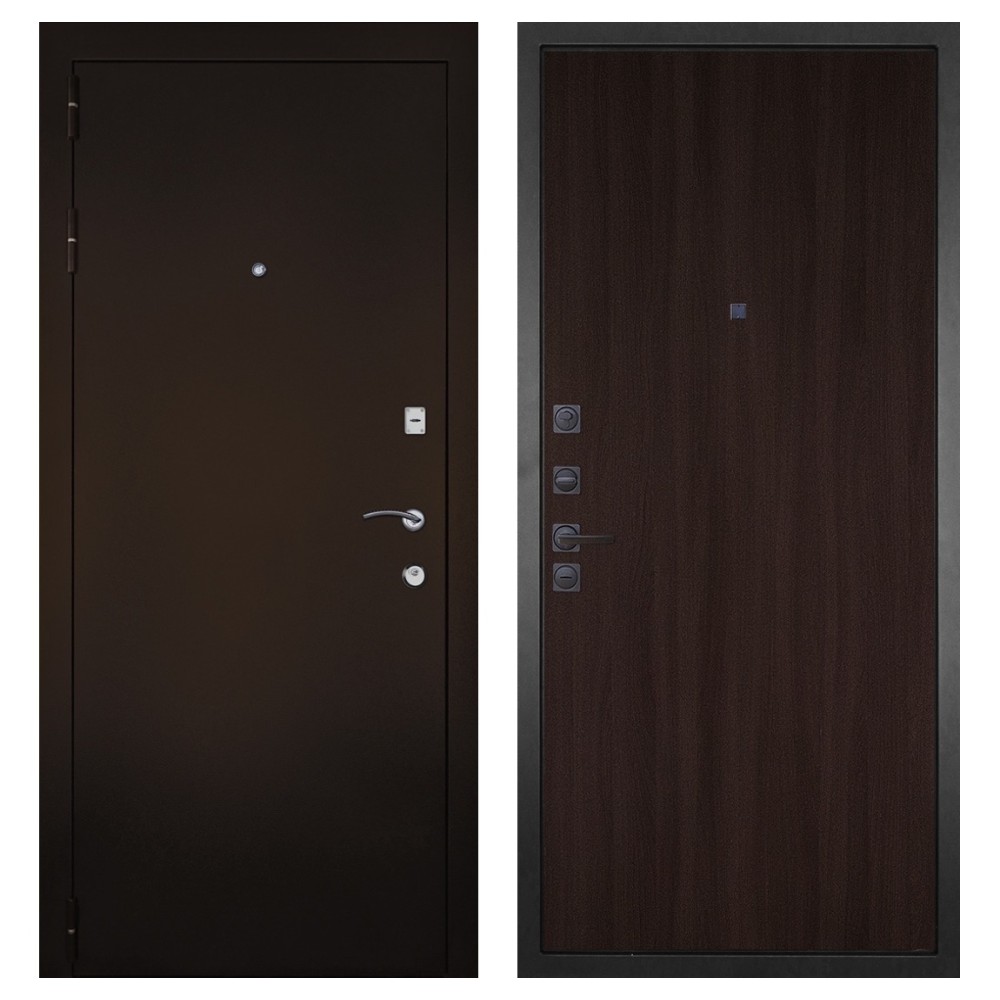 Эстетика и долговечность: Полимерно-порошковое покрытие в цвете «Антик-Медь» не только придаёт двери стильный вид, но и защищает её от повреждений и коррозии.