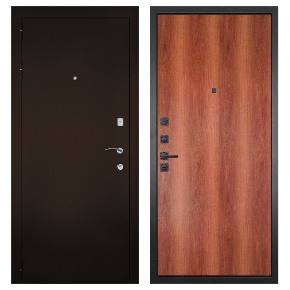 Эстетика и долговечность: Полимерно-порошковое покрытие в цвете «Антик-Медь» не только придаёт двери стильный вид, но и защищает её от повреждений и коррозии.