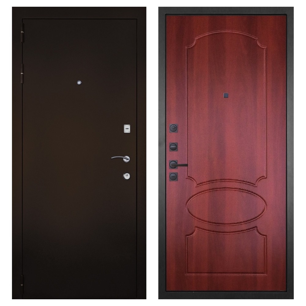 Эстетика и долговечность: Полимерно-порошковое покрытие в цвете «Антик-Медь» не только придаёт двери стильный вид, но и защищает её от повреждений и коррозии.