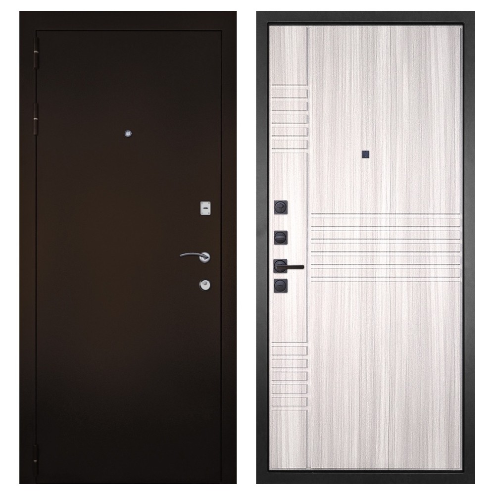 Дополнительные элементы безопасности: Три петли с закрытым подшипником и три противосъёмных штыря гарантируют долговечность и защиту от попыток снятия двери.