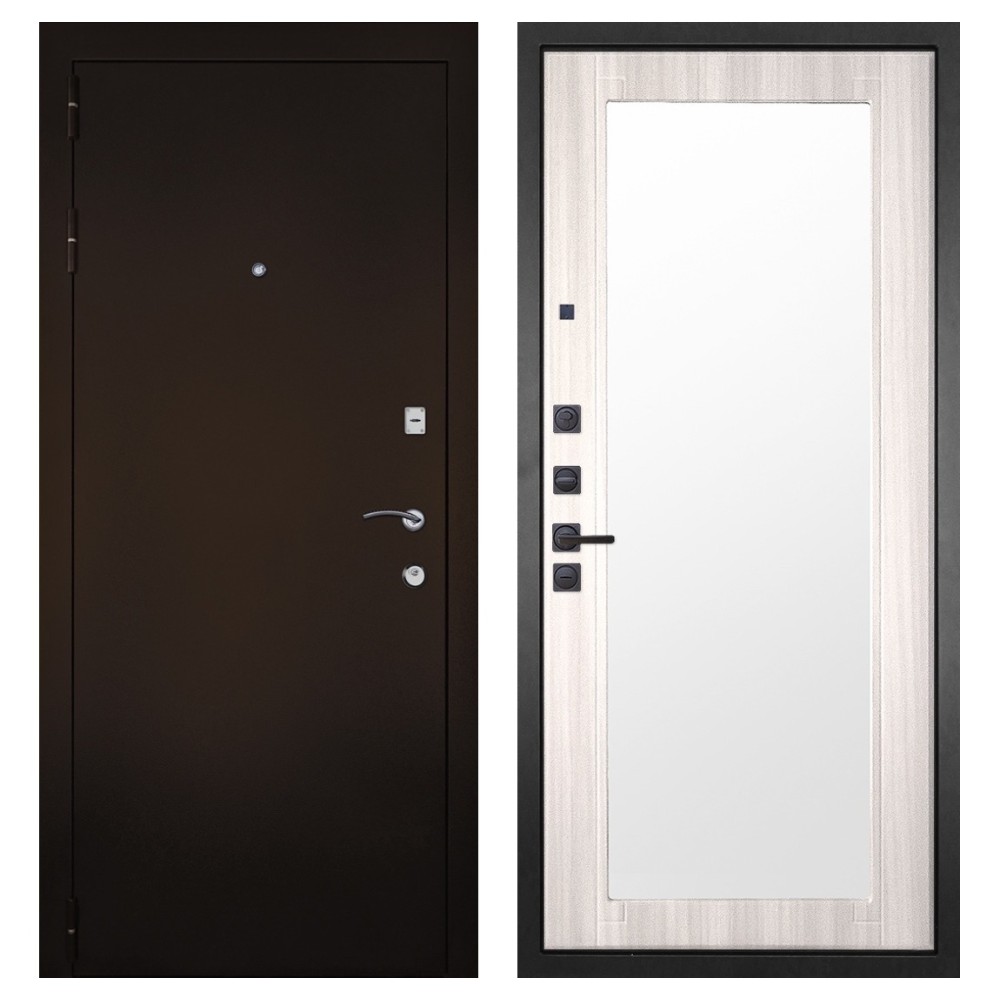 Дополнительные элементы безопасности: Три петли с закрытым подшипником и три противосъёмных штыря гарантируют долговечность и защиту от попыток снятия двери.