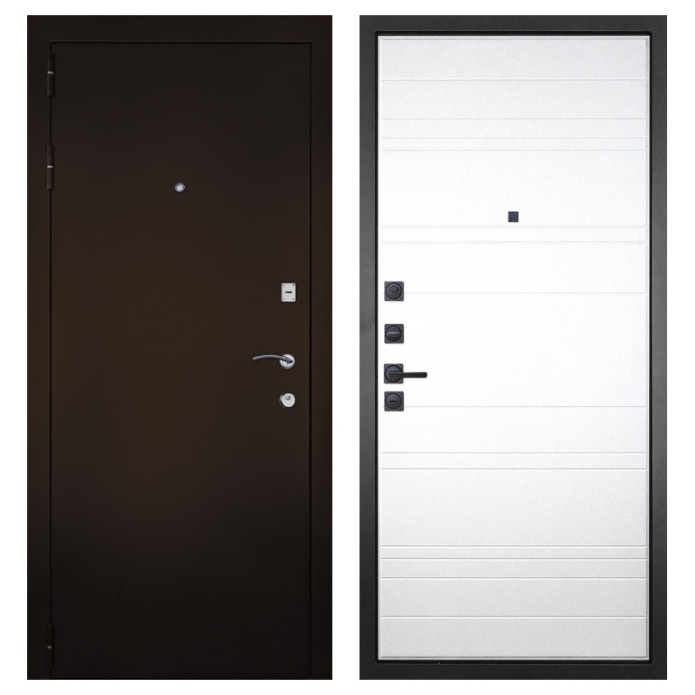 Прочность и защита: Полотно из стали толщиной 80-95 мм с двумя уплотнительными контурами обеспечивает надёжную защиту. Противосъёмные штыри и броненакладка предотвращают взлом.