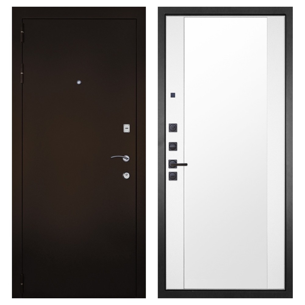 Прочность и защита: Полотно из стали толщиной 80-95 мм с двумя уплотнительными контурами обеспечивает надёжную защиту. Противосъёмные штыри и броненакладка предотвращают взлом.