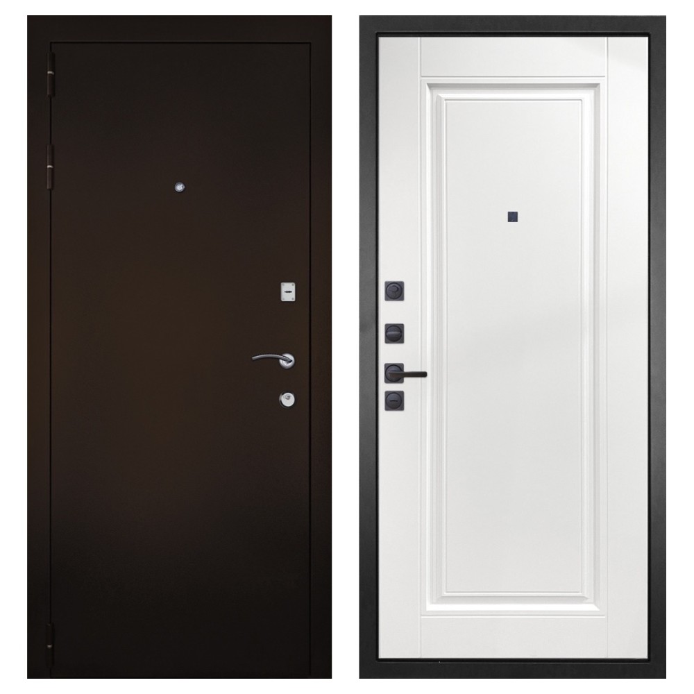Прочность и защита: Полотно из стали толщиной 80-95 мм с двумя уплотнительными контурами обеспечивает надёжную защиту. Противосъёмные штыри и броненакладка предотвращают взлом.