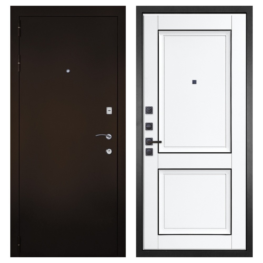 Дополнительные элементы безопасности: Три петли с закрытым подшипником и три противосъёмных штыря гарантируют долговечность и защиту от попыток снятия двери.