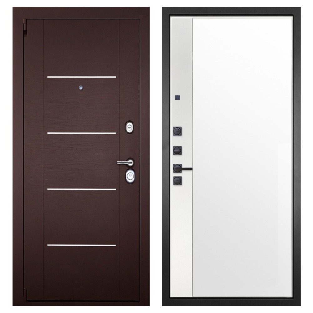 Прочность и защита: Полотно толщиной 100–120 мм из двух стальных листов, усиленные петли БАРК и пять противосъёмных штырей гарантируют надёжность конструкции.