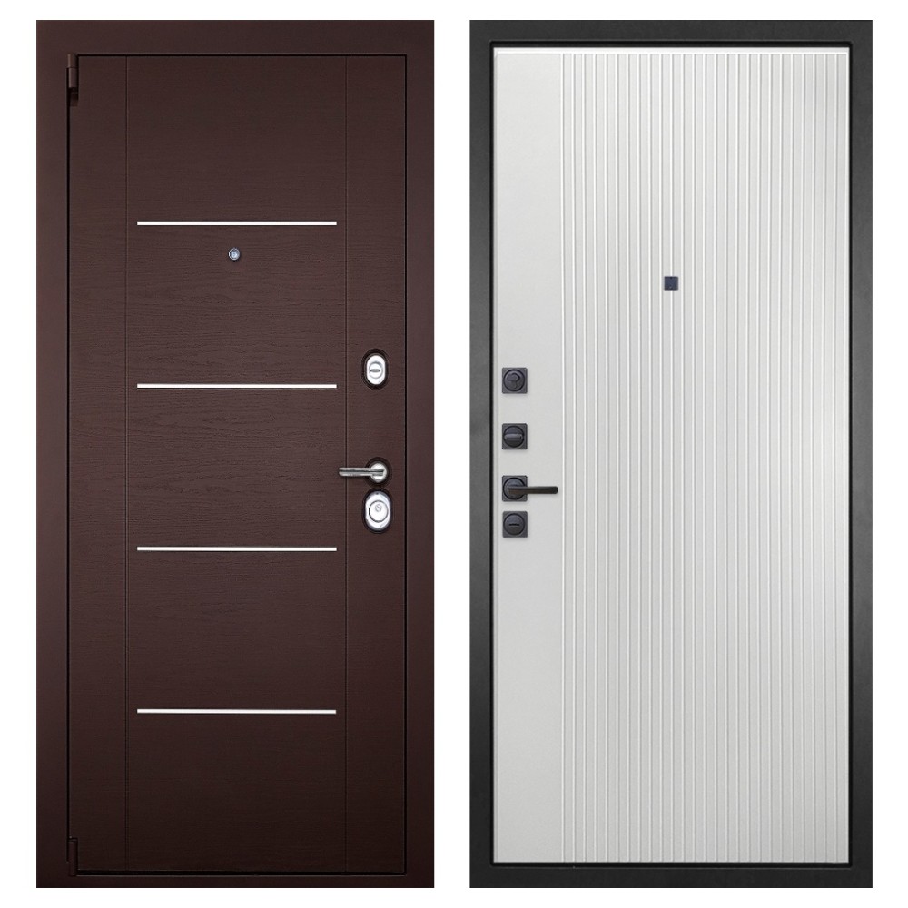 Прочность и защита: Полотно толщиной 100–120 мм из двух стальных листов, усиленные петли БАРК и пять противосъёмных штырей гарантируют надёжность конструкции.