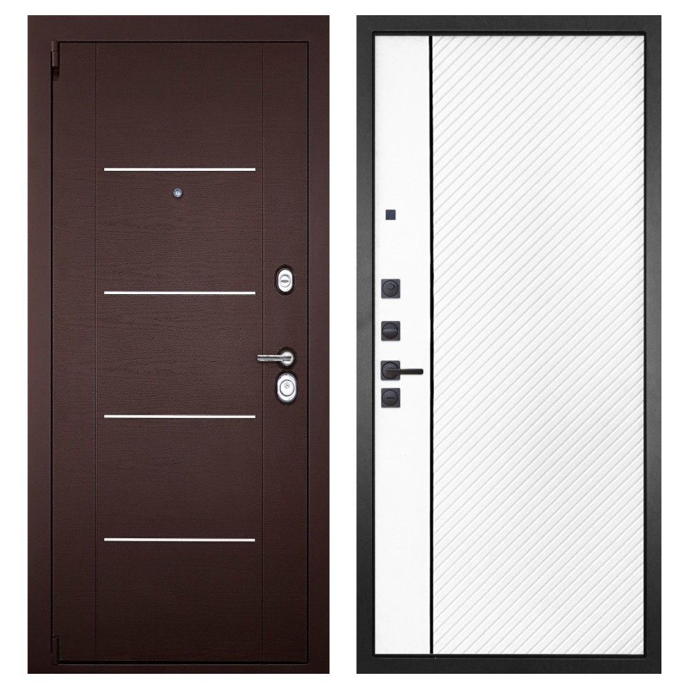 Прочность и защита: Полотно толщиной 100–120 мм из двух стальных листов, усиленные петли БАРК и пять противосъёмных штырей гарантируют надёжность конструкции.