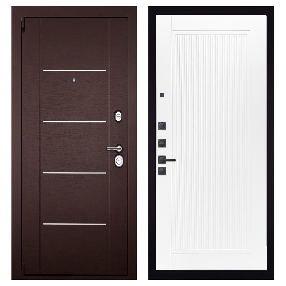 Прочность и защита: Полотно толщиной 100–120 мм из двух стальных листов, усиленные петли БАРК и пять противосъёмных штырей гарантируют надёжность конструкции.