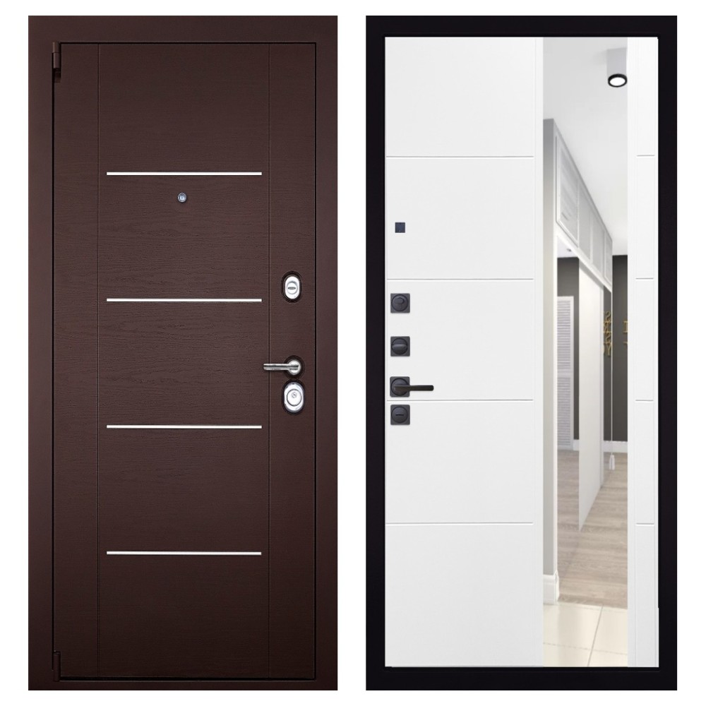 Прочность и защита: Полотно толщиной 100–120 мм из двух стальных листов, усиленные петли БАРК и пять противосъёмных штырей гарантируют надёжность конструкции.