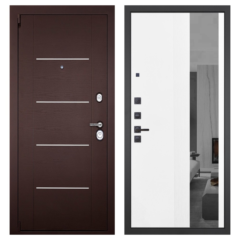 Прочность и защита: Полотно толщиной 100–120 мм из двух стальных листов, усиленные петли БАРК и пять противосъёмных штырей гарантируют надёжность конструкции.