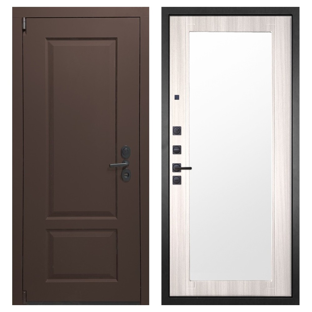 Функциональность: Задвижка «Ночной сторож», удлинённый глазок, усиленная ручка и фурнитура чёрного цвета добавляют удобства и стильности.