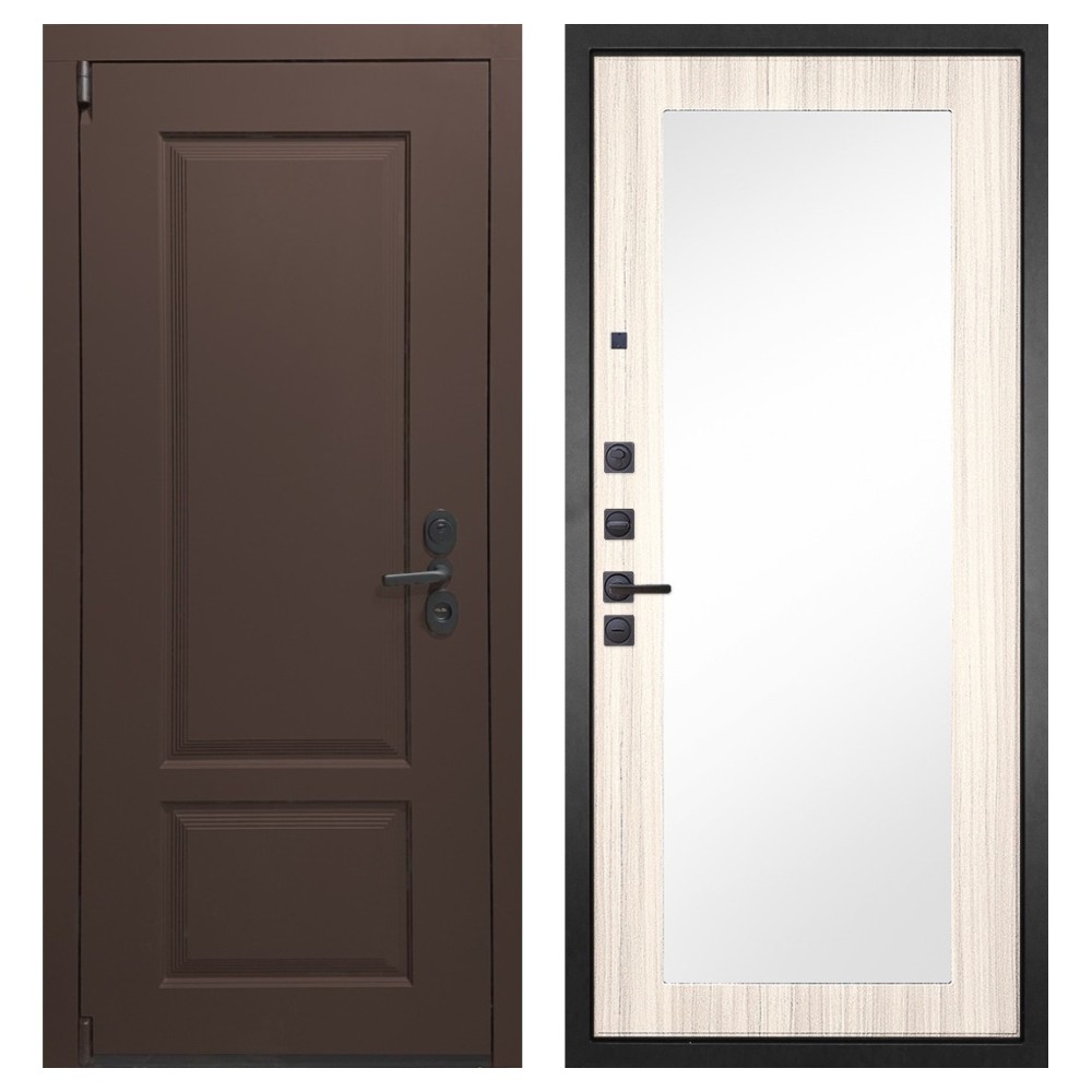 Функциональность: Задвижка «Ночной сторож», удлинённый глазок, усиленная ручка и фурнитура чёрного цвета добавляют удобства и стильности.