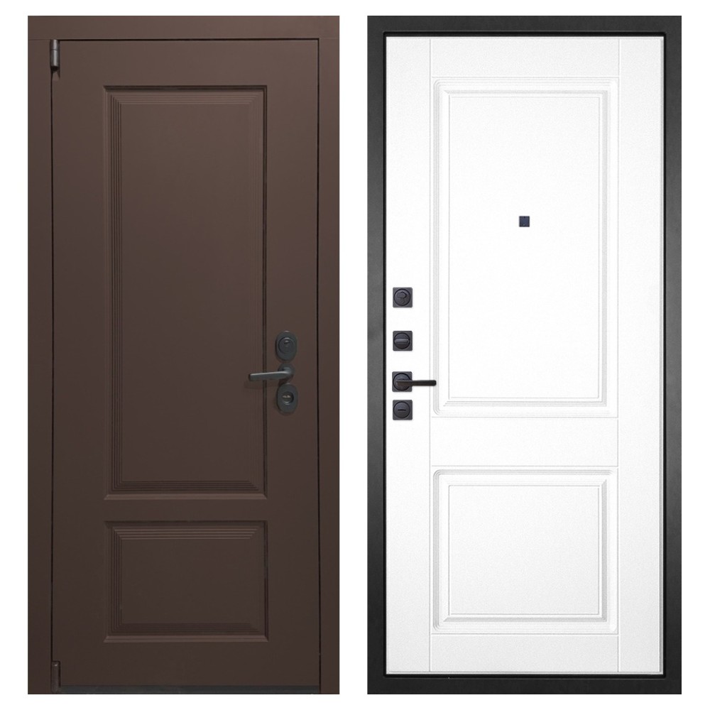 Функциональность: Задвижка «Ночной сторож», удлинённый глазок, усиленная ручка и фурнитура чёрного цвета добавляют удобства и стильности.