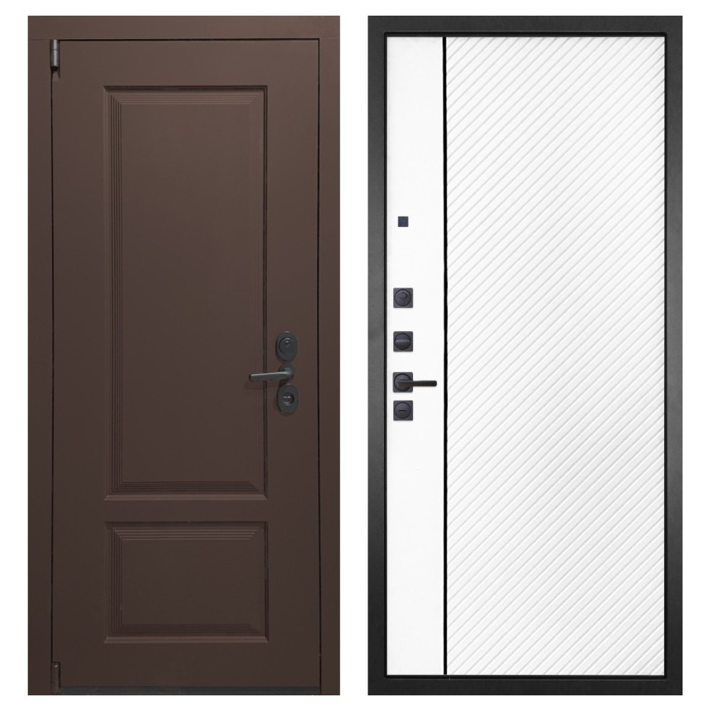 Функциональность: Задвижка «Ночной сторож», удлинённый глазок, усиленная ручка и фурнитура чёрного цвета добавляют удобства и стильности.