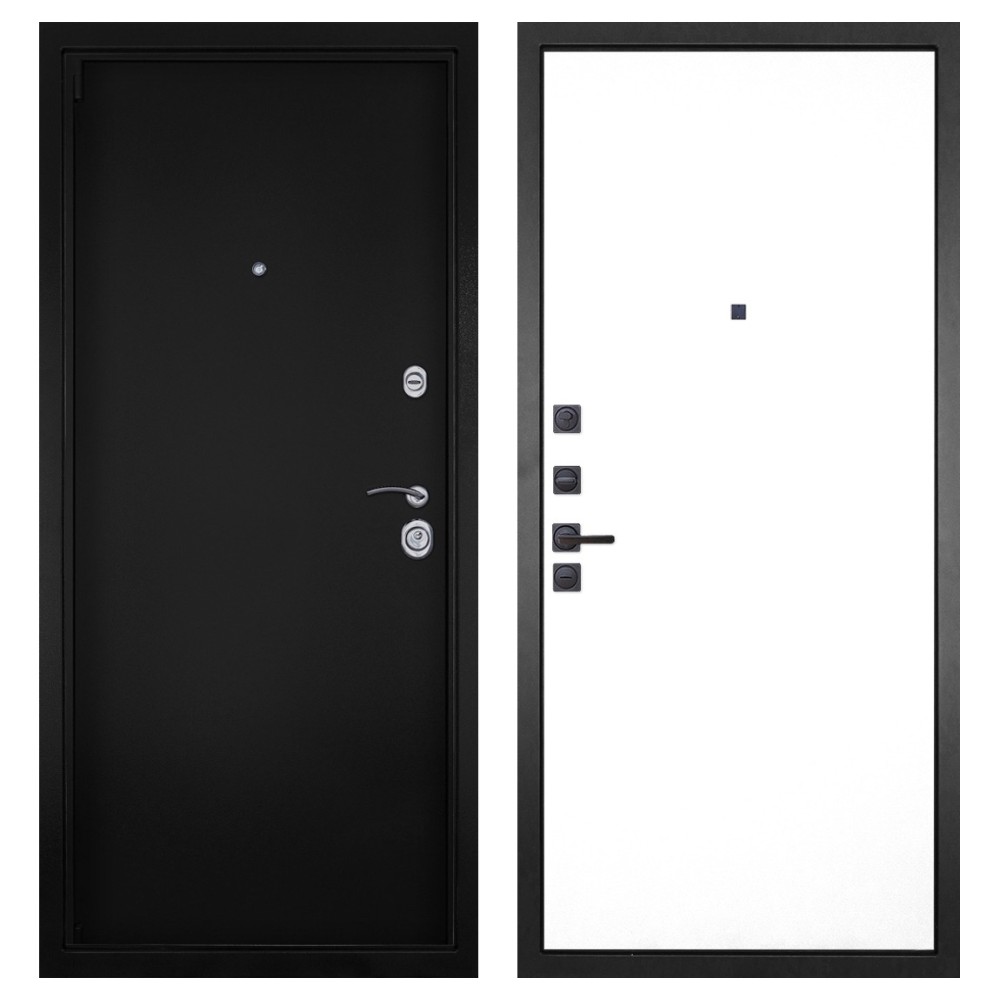 Дизайн и покрытие: Полимерно-порошковое покрытие цвета «Чёрная шагрень» придаёт двери современный и лаконичный вид. Два хромированных логотипа подчёркивают фирменный стиль.