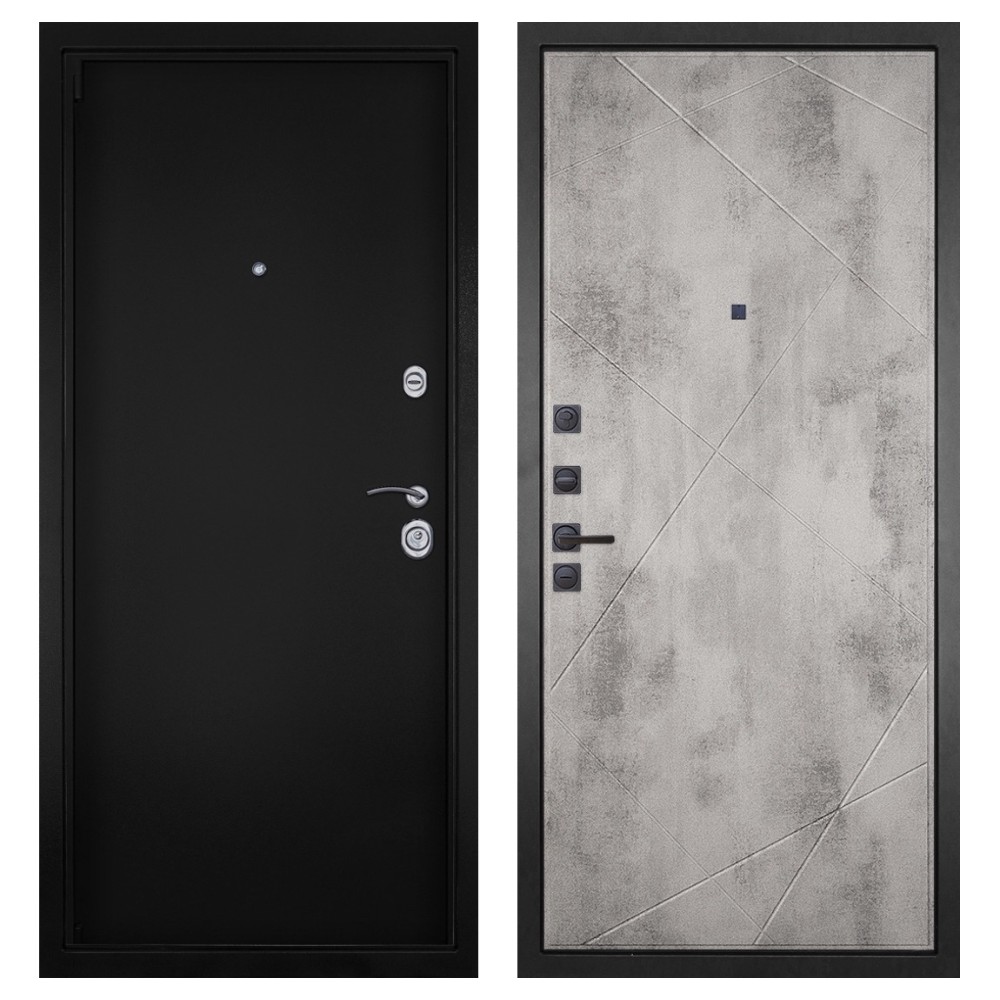 Дизайн и покрытие: Полимерно-порошковое покрытие цвета «Чёрная шагрень» придаёт двери современный и лаконичный вид. Два хромированных логотипа подчёркивают фирменный стиль.