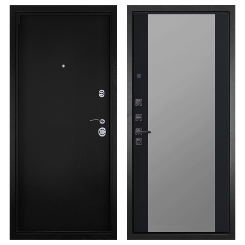 Дизайн и покрытие: Полимерно-порошковое покрытие цвета «Чёрная шагрень» придаёт двери современный и лаконичный вид. Два хромированных логотипа подчёркивают фирменный стиль.
