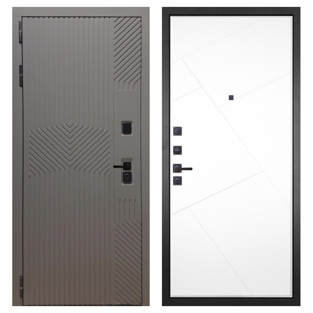 Конструкция и прочность: Полотно выполнено из одного стального листа и имеет замковый карман, закрытый утеплённый короб, четыре вертикальных П-образных ребра жёсткости и два горизонтальных усилителя. Такая конструкция обеспечивает стабильность и устойчивость к взлому. Вес двери до 110 кг при толщине полотна до 126 мм.
