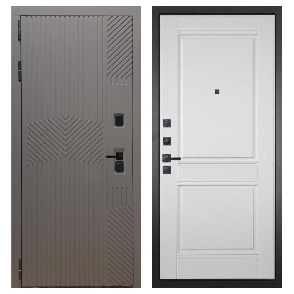 Конструкция и прочность: Полотно выполнено из одного стального листа и имеет замковый карман, закрытый утеплённый короб, четыре вертикальных П-образных ребра жёсткости и два горизонтальных усилителя. Такая конструкция обеспечивает стабильность и устойчивость к взлому. Вес двери до 110 кг при толщине полотна до 126 мм.
