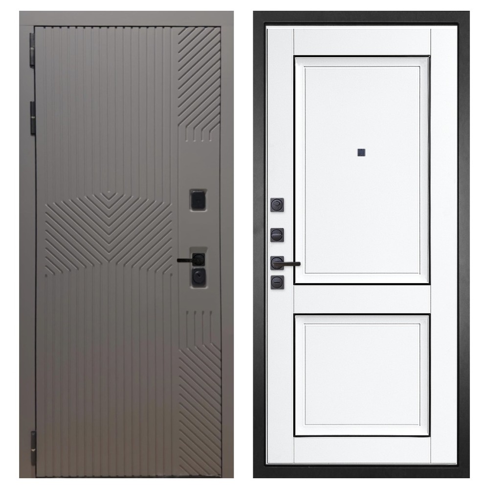 Конструкция и прочность: Полотно выполнено из одного стального листа и имеет замковый карман, закрытый утеплённый короб, четыре вертикальных П-образных ребра жёсткости и два горизонтальных усилителя. Такая конструкция обеспечивает стабильность и устойчивость к взлому. Вес двери до 110 кг при толщине полотна до 126 мм.