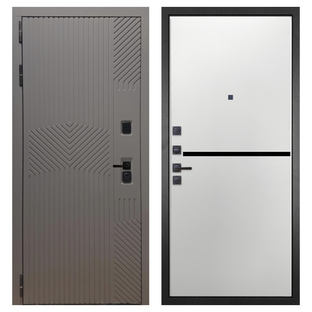 Конструкция и прочность: Полотно выполнено из одного стального листа и имеет замковый карман, закрытый утеплённый короб, четыре вертикальных П-образных ребра жёсткости и два горизонтальных усилителя. Такая конструкция обеспечивает стабильность и устойчивость к взлому. Вес двери до 110 кг при толщине полотна до 126 мм.