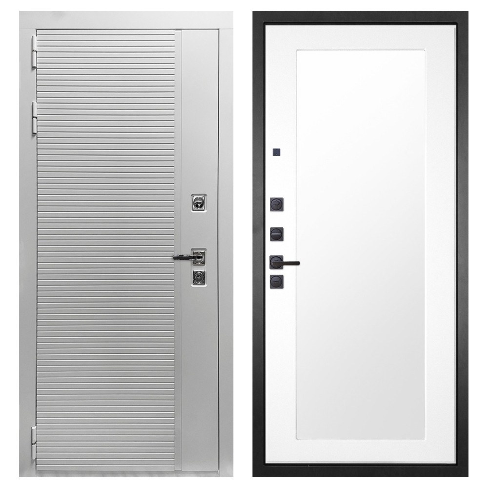 Дизайн и отделка: Полимерно-порошковое покрытие металлоконструкции выполнено в белом цвете — стойком, аккуратном и идеальном для квартиры. Внешняя МДФ-панель и наличники также белые, что создаёт единый гармоничный образ. Два объёмных хромированных логотипа придают модели фирменный стиль и аккуратность.