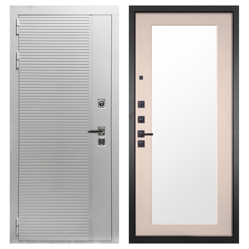 Дизайн и отделка: Полимерно-порошковое покрытие металлоконструкции выполнено в белом цвете — стойком, аккуратном и идеальном для квартиры. Внешняя МДФ-панель и наличники также белые, что создаёт единый гармоничный образ. Два объёмных хромированных логотипа придают модели фирменный стиль и аккуратность.