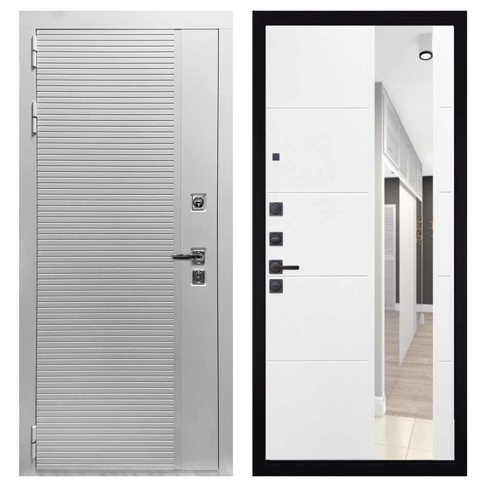 Дизайн и отделка: Полимерно-порошковое покрытие металлоконструкции выполнено в белом цвете — стойком, аккуратном и идеальном для квартиры. Внешняя МДФ-панель и наличники также белые, что создаёт единый гармоничный образ. Два объёмных хромированных логотипа придают модели фирменный стиль и аккуратность.