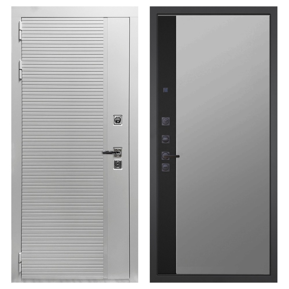 Дизайн и отделка: Полимерно-порошковое покрытие металлоконструкции выполнено в белом цвете — стойком, аккуратном и идеальном для квартиры. Внешняя МДФ-панель и наличники также белые, что создаёт единый гармоничный образ. Два объёмных хромированных логотипа придают модели фирменный стиль и аккуратность.