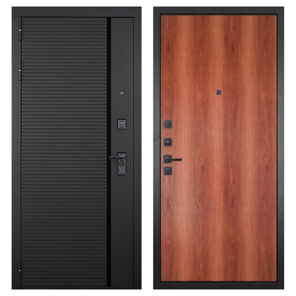 Функциональность и удобство: Усиленная ручка, удлинённый глазок и фурнитура цвета «чёрный» придают двери минималистичный вид и делают использование комфортным. Конструкция рассчитана на долгие годы эксплуатации без потери внешнего блеска и надёжности.