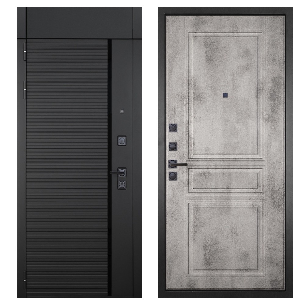 Гранит Пиано Черная с фрамугой, панель 043 Бетон светлый 12 мм