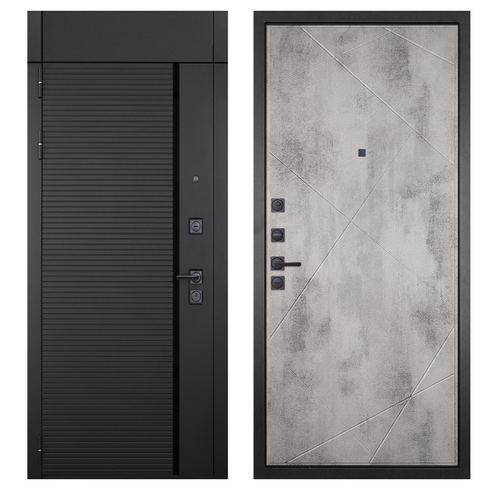 Гранит Пиано Черная с фрамугой, панель 044 Бетон светлый 12 мм