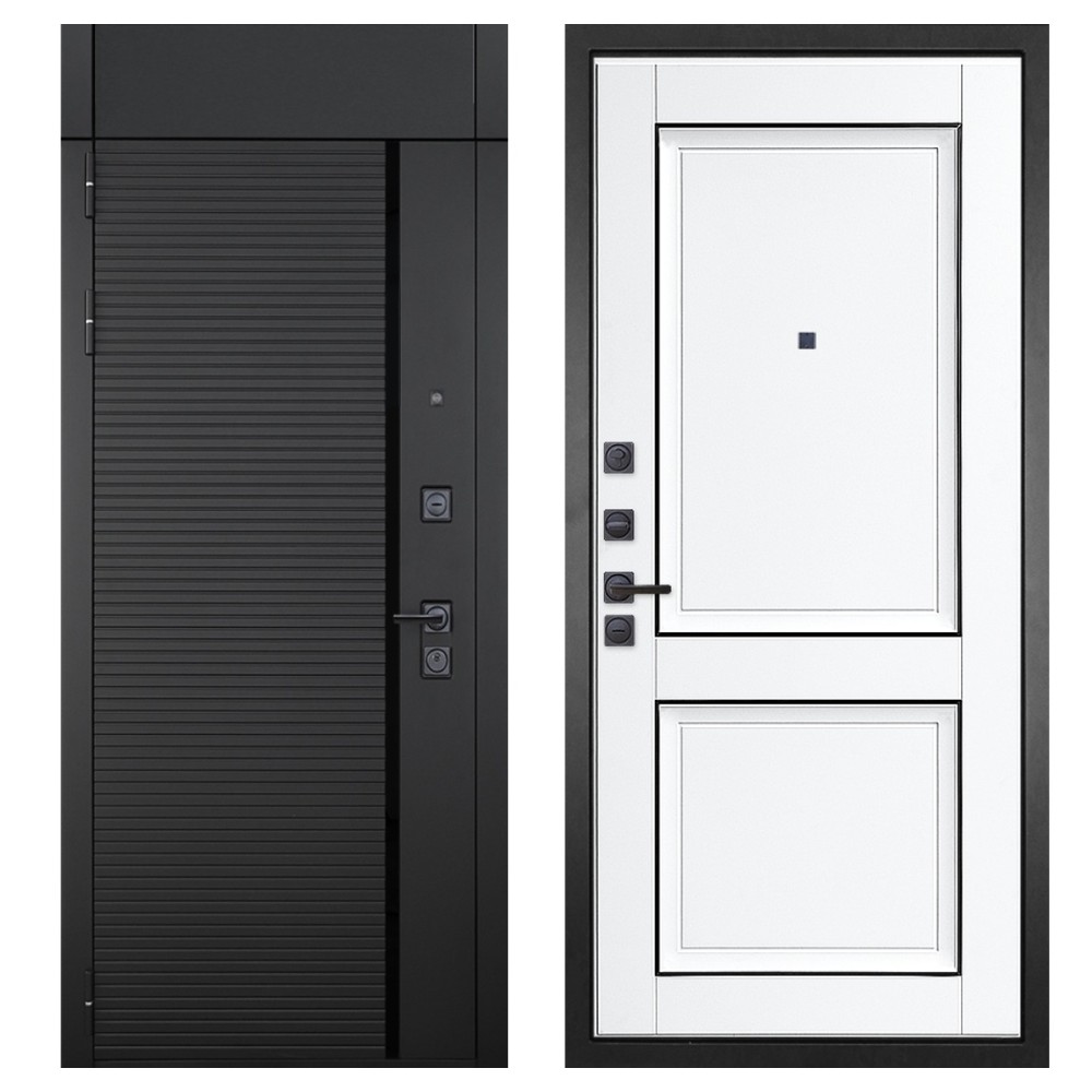 Гранит Пиано Черная с фрамугой, панель 070 Две филенки с молдингом белый матовый 12 мм
