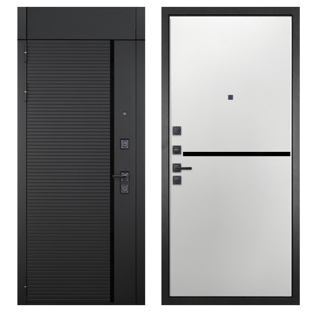 Гранит Пиано Черная с фрамугой, панель 073 горизонт белая 10 мм