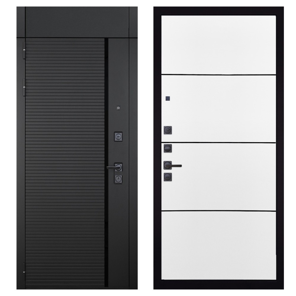 Гранит Пиано Черная с фрамугой, панель 079 Белый софт, черный молдинг 12 мм