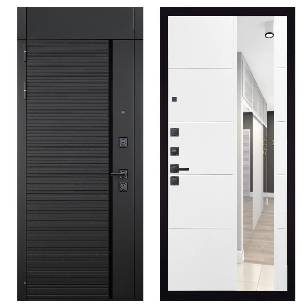 Гранит Пиано Черная с фрамугой, панель 083 Белый софт зеркало 10 мм