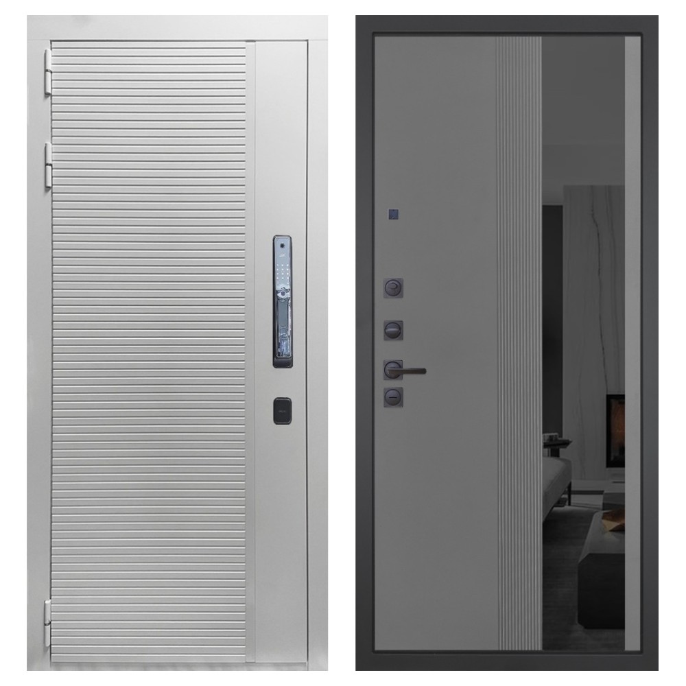 Гранит Пиано Смарт Белая, панель 086 Серый рельеф софт с тонированным зеркало 10 мм