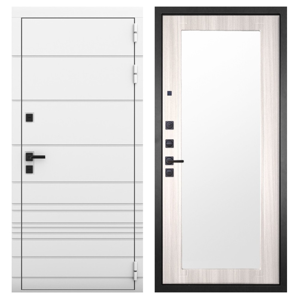Функциональность и удобство: Чёрная фурнитура выгодно контрастирует с белой отделкой, создавая стильный акцент. Удлинённый глазок, усиленная ручка и качественные петли обеспечивают удобство повседневного использования.
